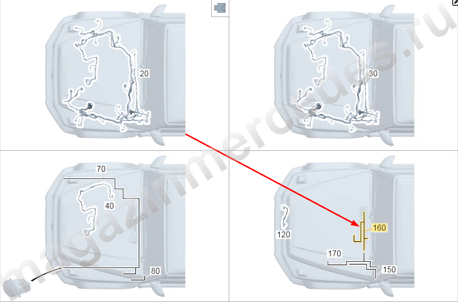 Жгуты электропроводки обогрева форсунок стеклоомывателя Mercedes EQG