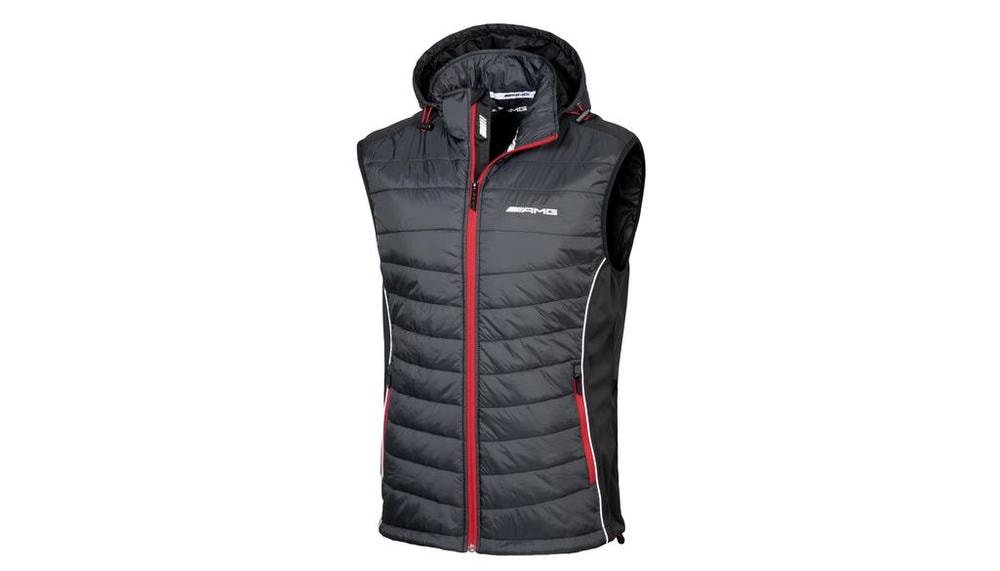 Обеспечивает приятное тепло в сочетании с надежной защитой от ветра и непогоды: мужской жилет, сочетающий в себе цвета «Серый селенит», красный и черный, и слегка приталенный зауженный покрой. Не пропускающий ветер функциональный жилет качества софтшелл имеет съемный капюшон и устойчивую к воздействию воды застежку-молнию. Высокий воротник с защитой подбородка, два боковых втачных кармана на молнии, а также множество внутренних карманов дополняют функциональность. Внешний вид жилета не оставит вас равнодушным. Белый тисненый логотип AMG на груди придаст правильный визуальный акцент. Идеальный спутник для досуга.