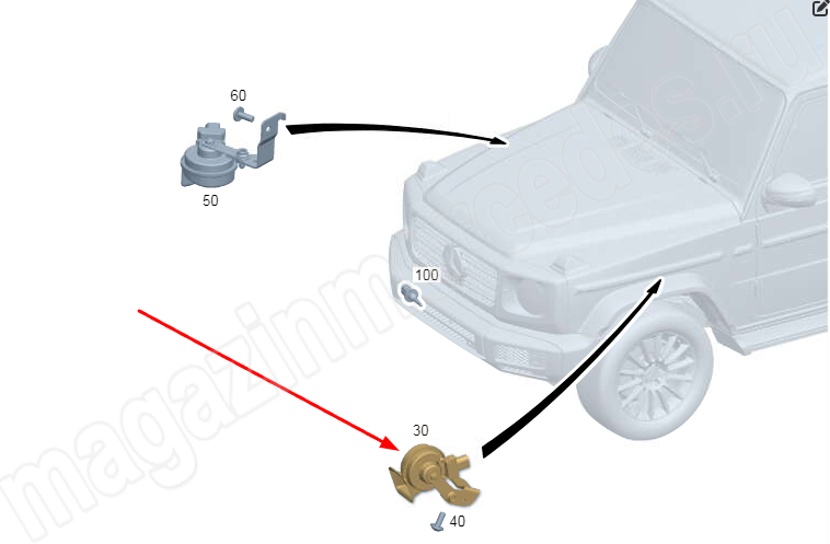 Звуковой сигнал слева 510 HZ; 12V 510HZ Mercedes EQG